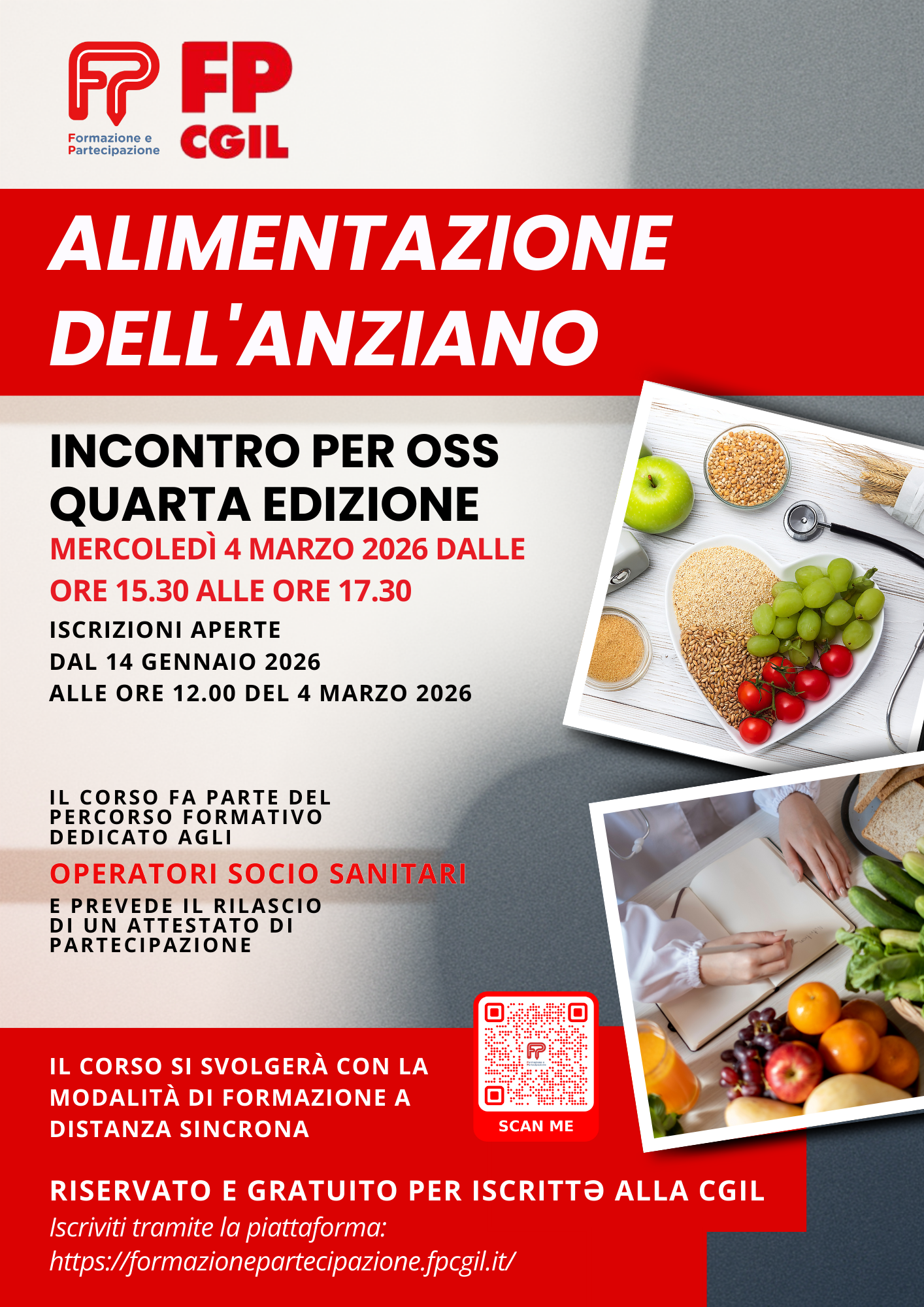 Corso dedicato agli Operatori Socio Sanitari che si svolgerà in modalità FAD Sincrona organizzato dalla FPCGIL Nazionale Formazione.